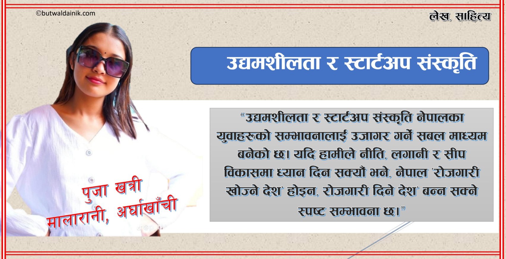 आजको विश्व प्रतिस्पर्धा र प्रविधिको युग हो। जहाँ जोस, सिर्जनशीलता र नवीन सोच भएका युवाहरूले ठूलो परिवर्तन ल्याइरहेका छन्। नेपाल पनि यस प्रवाहबाट अछुतो छैन। पछिल्ला वर्षहरूमा “उद्यमशीलता (Entrepreneurship)” र “स्टार्टअप संस्कृति (Startup Culture)” नेपाली समाजमा नयाँ सम्भावनाको रूपमा उदाउँदै गएको छ।